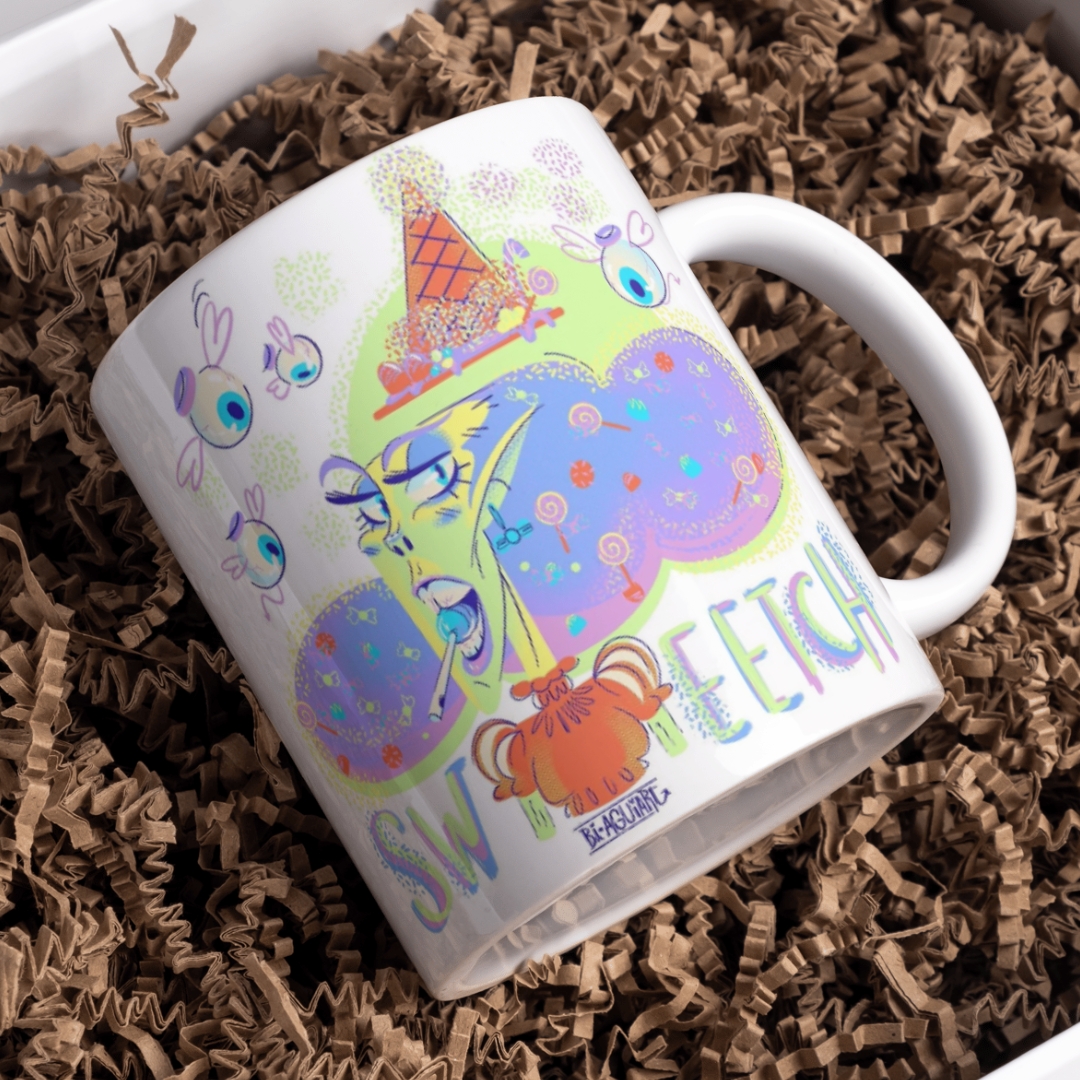 Essa caneca apresenta uma arte exclusiva adaptada das ilustrações dessa artista incrível.