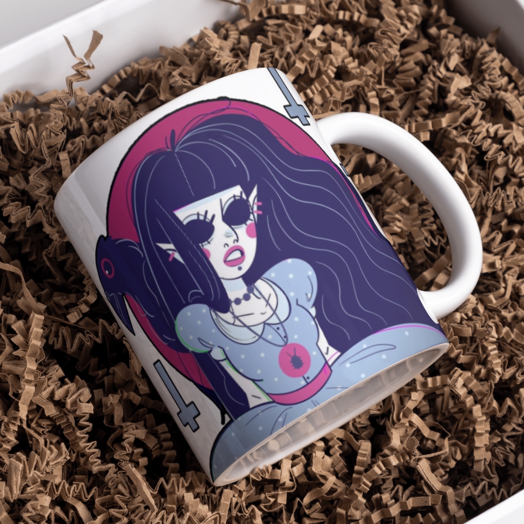 Essa caneca apresenta uma arte exclusiva adaptada das ilustrações dessa artista incrível.